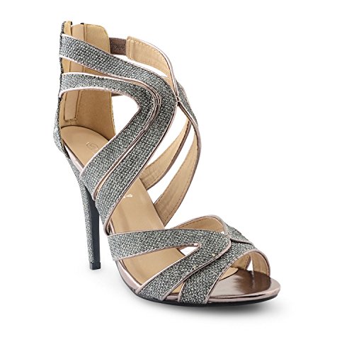 Best Seller! New Ladies Stiletto High Heel Cross Strappy Peep Toe Glitter Sandals Size UK 3-8, Pewter UK 6 Review