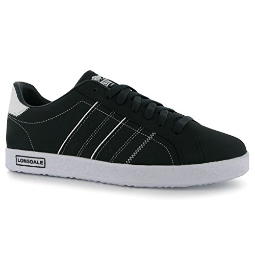The Lonsdale Oval Trainers provide a comfortable fit thanks to a padded heel and ankle collar, and sport stitched styling to the sides. These Lonsdale trainers sport a thick moulded outsole and are complete with the Lonsdale motif to the heel and tongue. Mens trainers Lace up Padded heel and ankle collar Stitched styling Coated leather upper Durable moulded outsole Lonsdale logo Leather upper, textile inner, synthetic sole